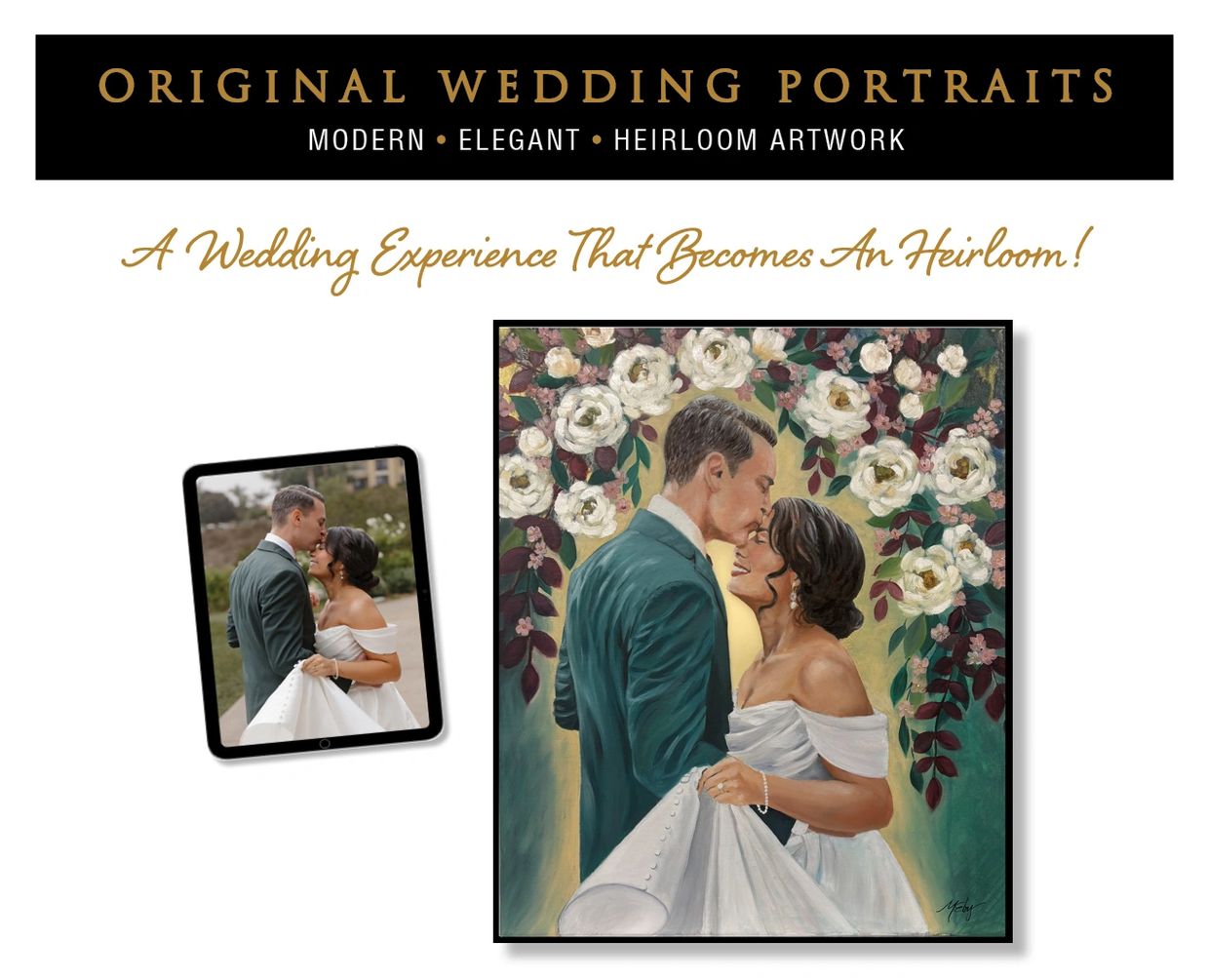 Each hand-painted portrait is created as a true heirloom — Capturing the emotion of the day, and your